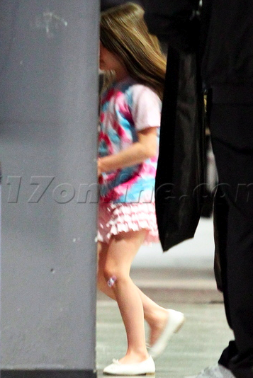 Suri is wearing... ahem.. a Tie Dye shirt.. well, i said it. The only possible explanation - it was an "arts&crafts" project with Katie...
